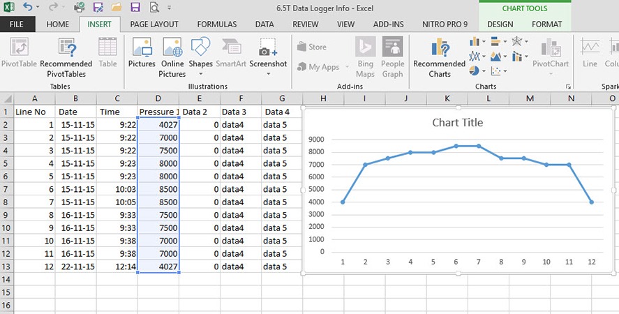 - The reports will show a vertical scale of temperature on the left, a time recorded record horizontally along the bottom and a vertical scale of pressure on the right-hand side. The layout can be customized and the temperature can be flagged not to show.